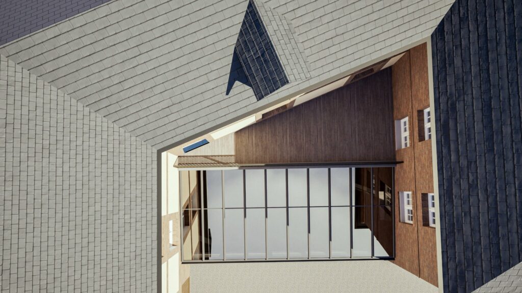 Le projet établit ainsi un dialogue entre patrimoine et intervention contemporaine, en s’appuyant sur l’existant plutôt qu’en le transformant radicalement.